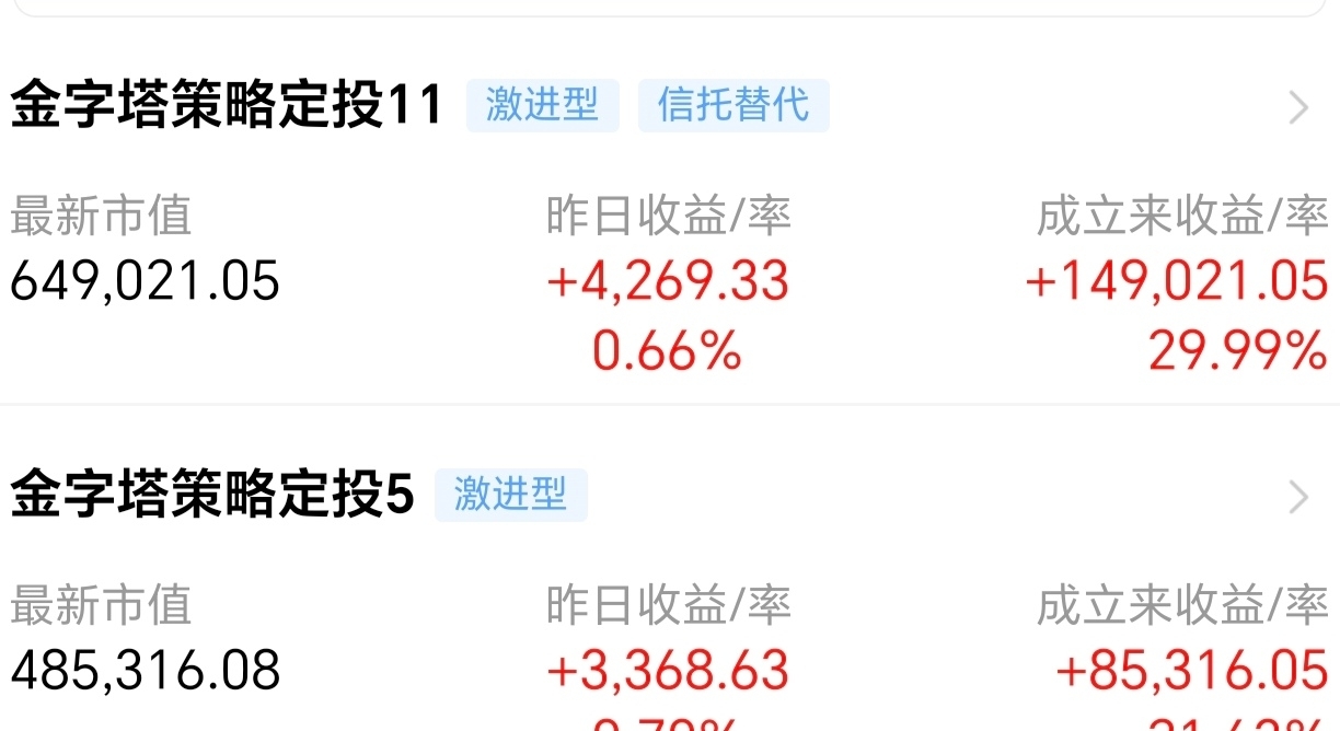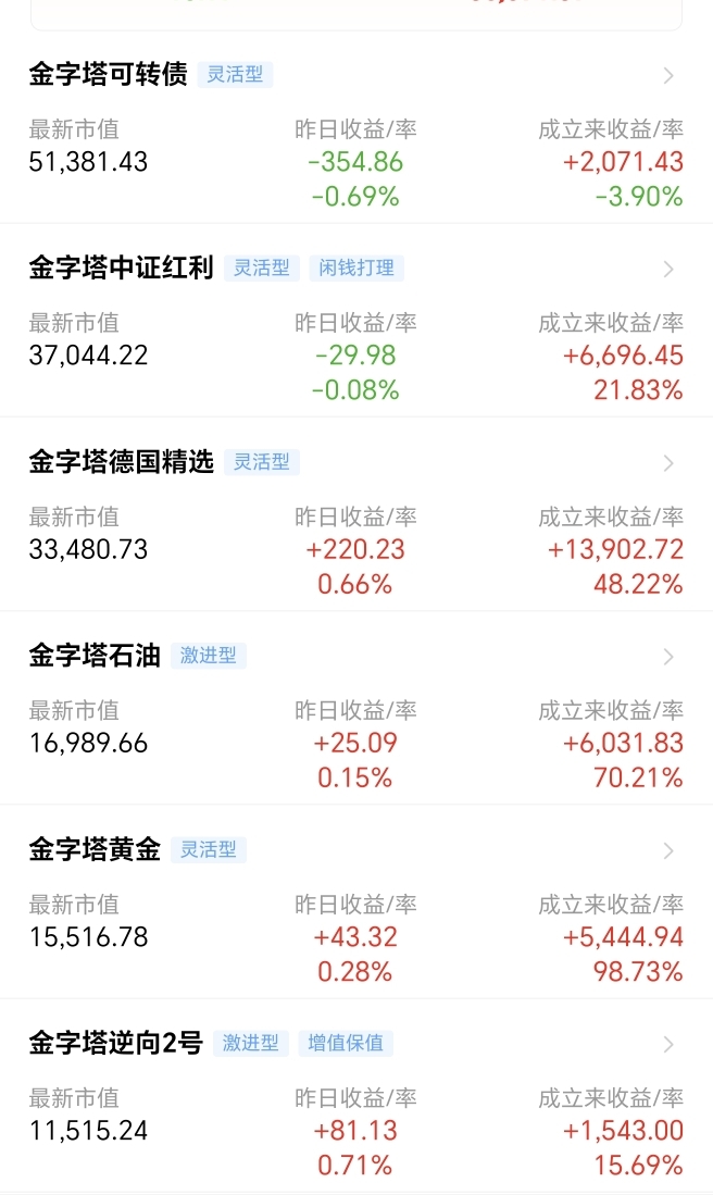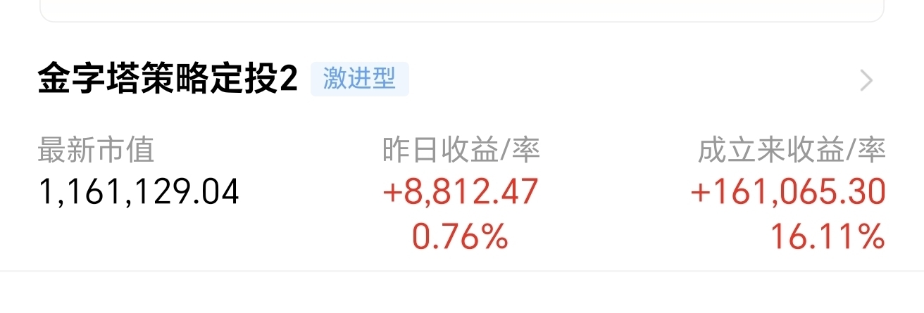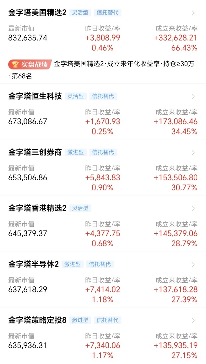 目前累计收益1806744+未公开债券收益,累计收益率排名前三的组合分别是黄金、石油、美国精选2;排名后三位的是医药、白酒、消费。收益金额排名前三的是美国精选2、恒生科技、策略定投2;排名后三的是医药、消费、白酒。