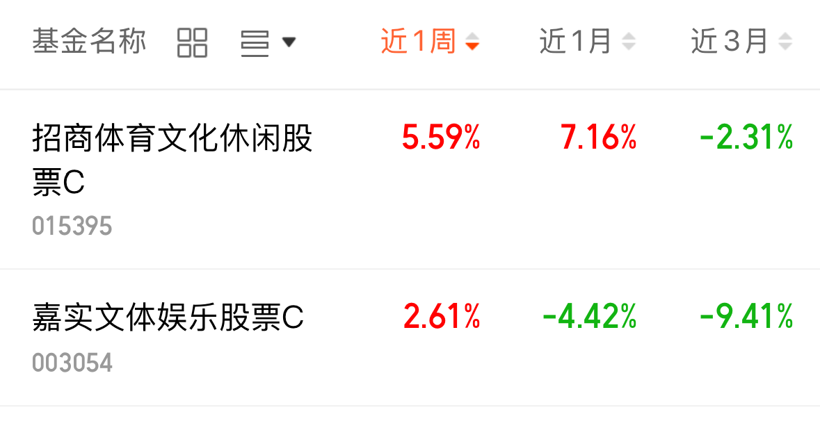 $招商体育文化休闲股票C(OTCFUND|015395)$近一周7.16%