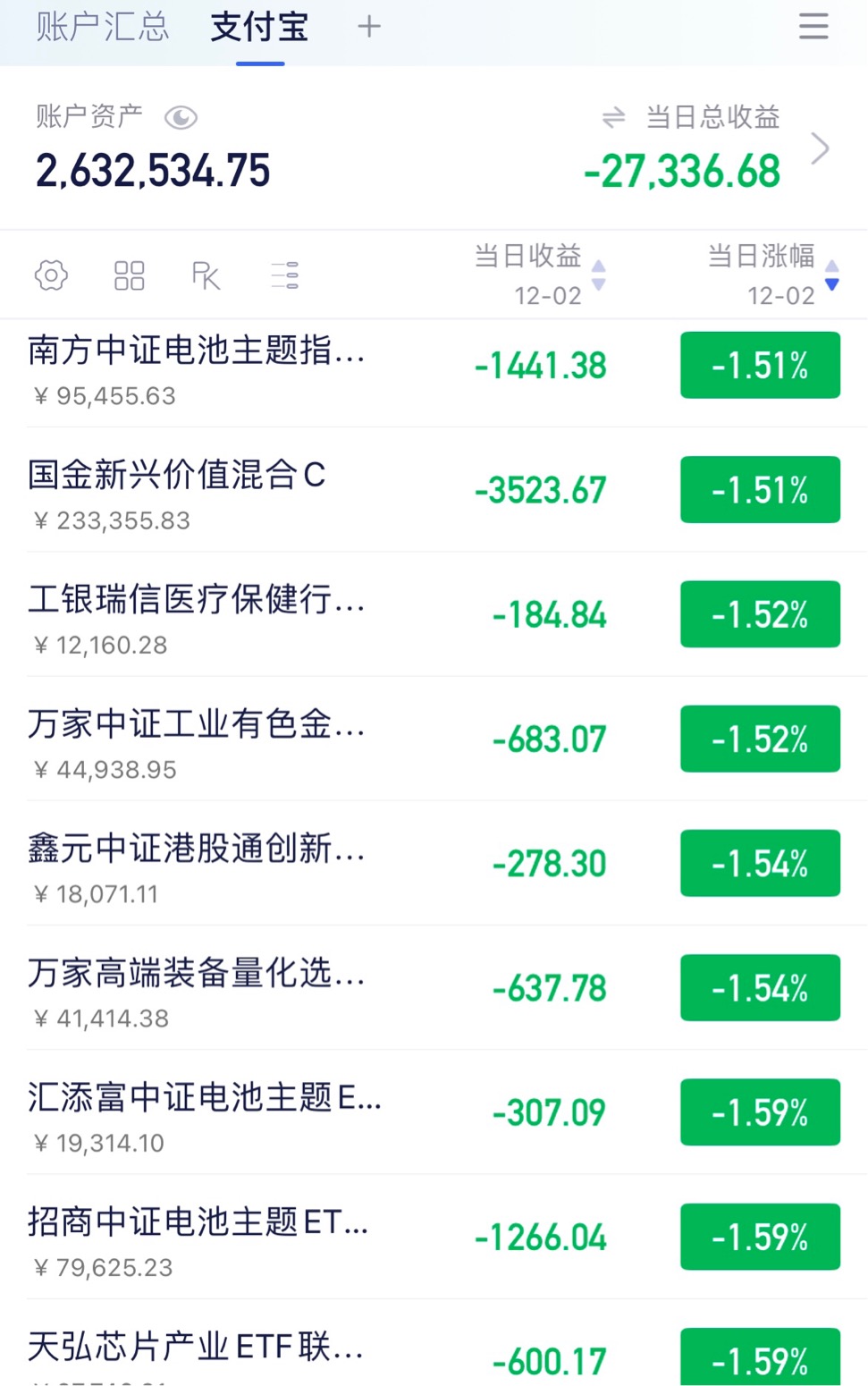 兄弟们该来的还是来了,调整他不会缺席,只是迟到,上一周就讲到连续几个交易日上涨,只要成交量一放大就一定会有调整,昨天成交量放大了18%,所以我在周一就预判今天调整的概率超过90%,但是,我也没想到调整的幅度有这么大,按照目前数据更新个人亏损超过30,000