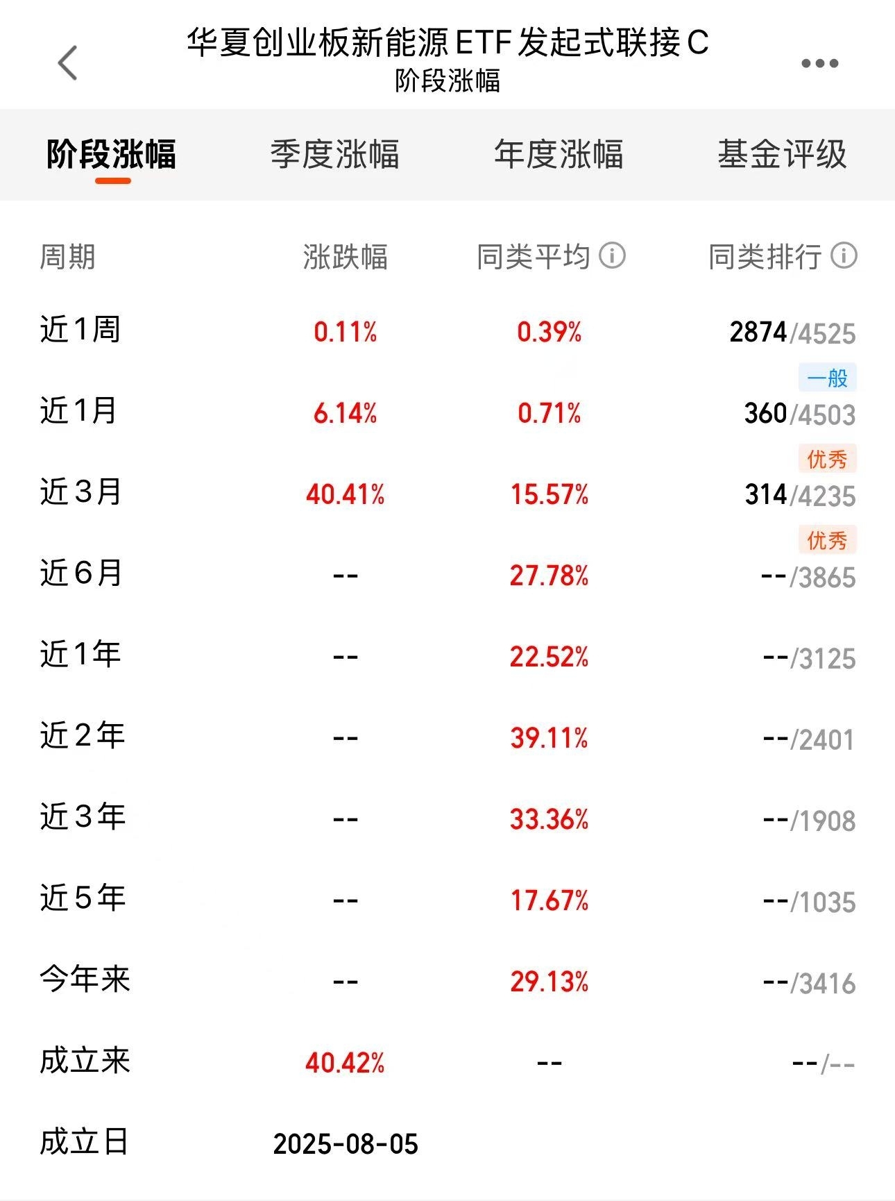 从当前市场走势看,科技还是跑不过新能源的,这基近3个月收益40%+,收益很可观的,今天走势还在拉升,继续持仓$华夏创业板新能源ETF发起式联接C$