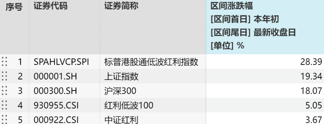 11月的A股市场正经历着显著的风格切换。在科技股因估值压力陷入调整、新能源板块因资金博弈呈现剧烈波动的背景下,以高股息、低波动为特征的红利资产悄然走出独立行情。今年以来,标普港股通红利低波指数以28.39%的涨幅领跑红利指数(3.67%)和红利低波指数(5.05%),更显著跑赢沪深300指数(同期涨幅18.07%),这一数据揭示出市场资金正在从成长赛道向防御性资产迁移的深层逻辑。#特斯拉拟建新厂生产Optimus人形机器人##钙钛矿电池获重要进展 发展前景看好吗?#