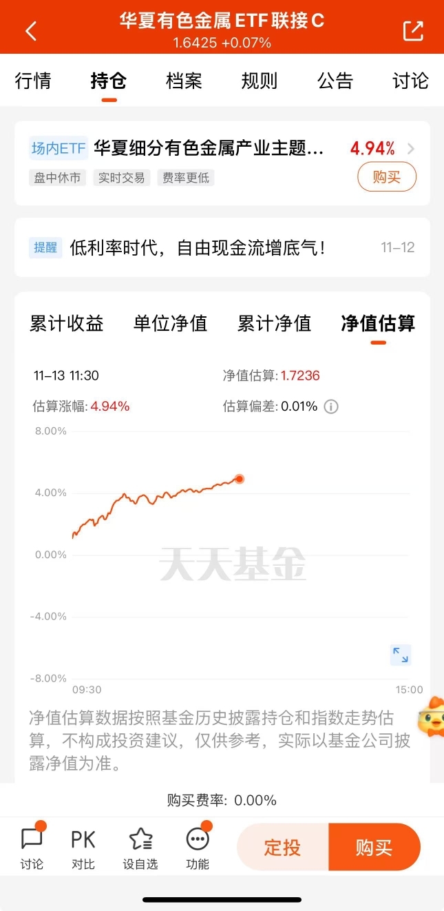 大资金看好有色,决定跟着大资金走,今天上涨近5个点了,而且近6天5天正收益,3个月收益34%+,$华夏有色金属ETF联接C$这波上涨真给力啊