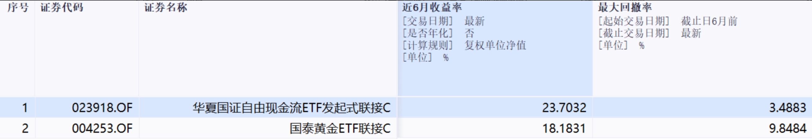 当前市场行情,还是自由现金流更靠谱,近5天红4天,近6个月收益23%+,$华夏国证自由现金流ETF发起式联接C$收益还高于同泰的黄金基,回撤也更小,拿着比黄金基更能避险赚收益,看来要加大持仓力度了