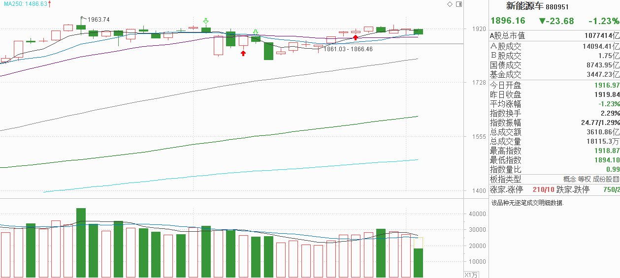 各位在新能源车里的投资者们,昨天是不是又被市场晃得头晕眼花?探底回升收了下影线,而上周五冲高回落又是上影线,上影线代表阻力,下影线代表承接,新能源车又在5天线上方波动,我认为新能源车的主力在说5天线附近是多空平衡,继续横向震荡会是大概率,直到市场出现打破平衡的信号出现。今天新能源车小阴调整再次下探10天线,趋势看起来挺弱的,但并没有失守昨天的下影线低点,由于现在的市场波动并不大,不能排除尾盘又是V回去,今天新能源车走弱,只能说抛压略占优,但没有达到选方向的力度。尽管如此,现在新能源的领涨龙头是固态电池,今天回调力度就更大一些,不过与新能源车一样,并没有失守昨天的下影线低点,虽然表现较弱,但谈不上见高,只是正常的震荡,这种情况下整个新能源方向还是多空平衡,先观望一天看看,如果明天还是下行走弱,就得开始考虑止盈了。