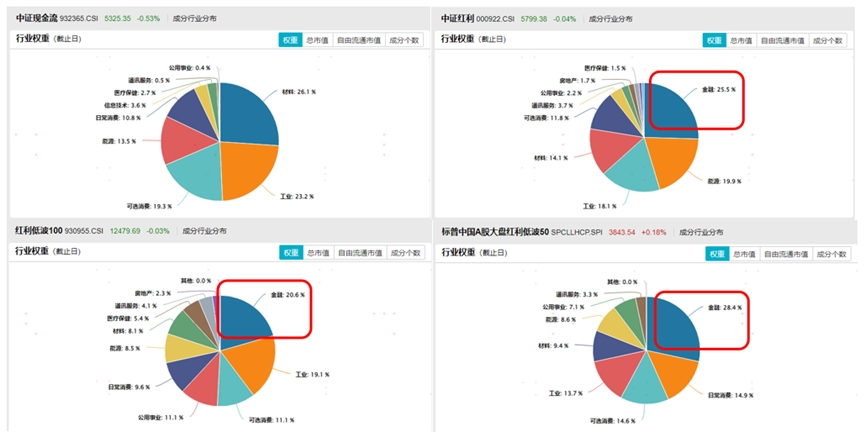 在自由现金流指数刚问世的时候,有些朋友认为,它的收益表现会比红利指数好一些,同样也会承担更大的回撤风险。但是因为指数的季度动态调节机制和相比红利指数剔除金融(尤其是银行)等成分后的表现远远好于红利指数。如果我们详细拆解,相关红利指数银行的占比基本都在20%以上。银行目前也处于高估值状态,同时做为大A的权重行业,银行的上涨趋势问题可能不大,但是因为其已经处于高估值状态,涨幅相比自由现金流重仓行业的差距显而易见。未来的一段时间内银行的高估值状态依旧存在,怎么选更是明明白白。