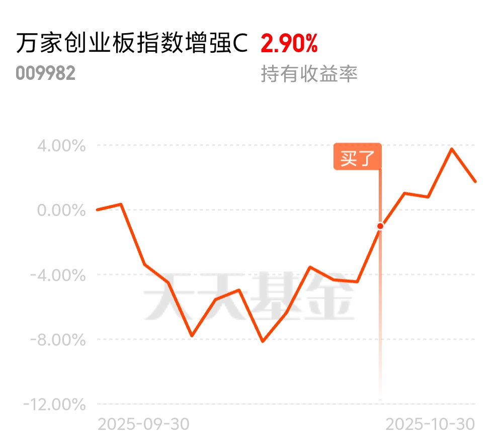 $万家创业板指数增强C$持仓还不多,有机会肯定还是要关注的,创业板还没过前高,哪