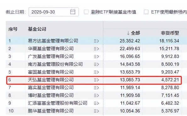 虽然大部分基金公司规模排名变化不大,尤其是头部基金公司,更是稳进前行,但是,前十大格局并非“铁桶一块”,比如:天弘基金曾经可是第一名,现在变成了第6,前五也没保住。
