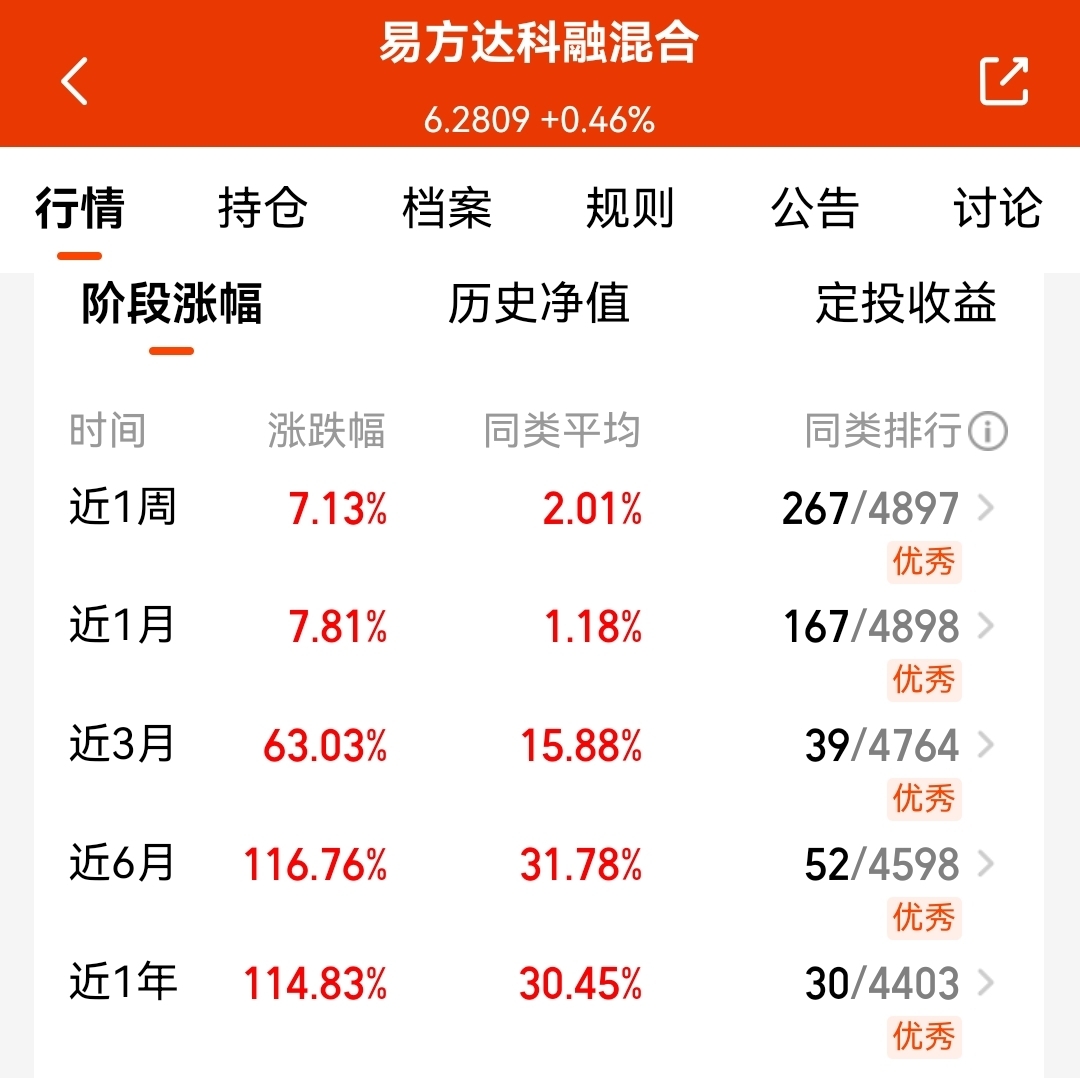 而这支$易方达科融混合$ ,持仓上来看,不仅买了科技,还买了反内卷相关的新能源等,对冲风险的同时,也刚好赶上今天新能源板块的大涨,事实证明,这种相比于押注单一CPO等高位科技赛道,性价比确实很不错了;