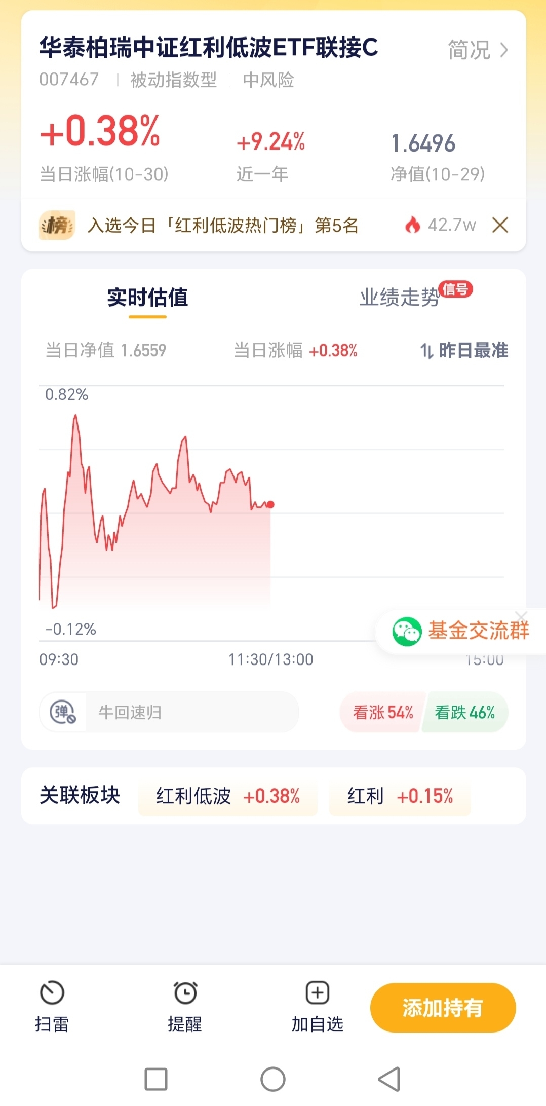 红利低波今天涨了0.38%,行情稳得很!华泰柏瑞今天也涨了0.38%,近一年更是