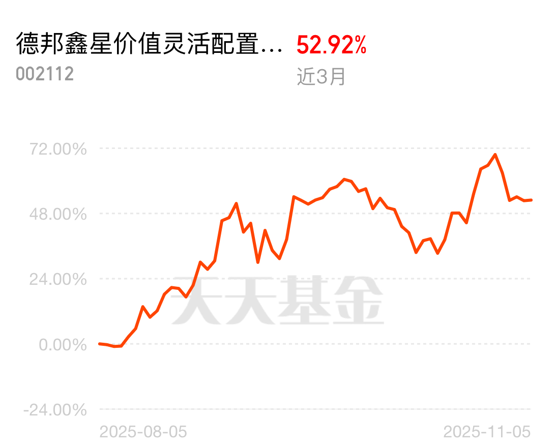 市场风格频繁轮动,CPO作为强势赛道始终没掉队,涨势依旧强劲,德邦鑫星价值灵活配置混合C近3个月涨了52.59%,我一直坚定持有,没被短期行情带偏,现在收益越来越可观。