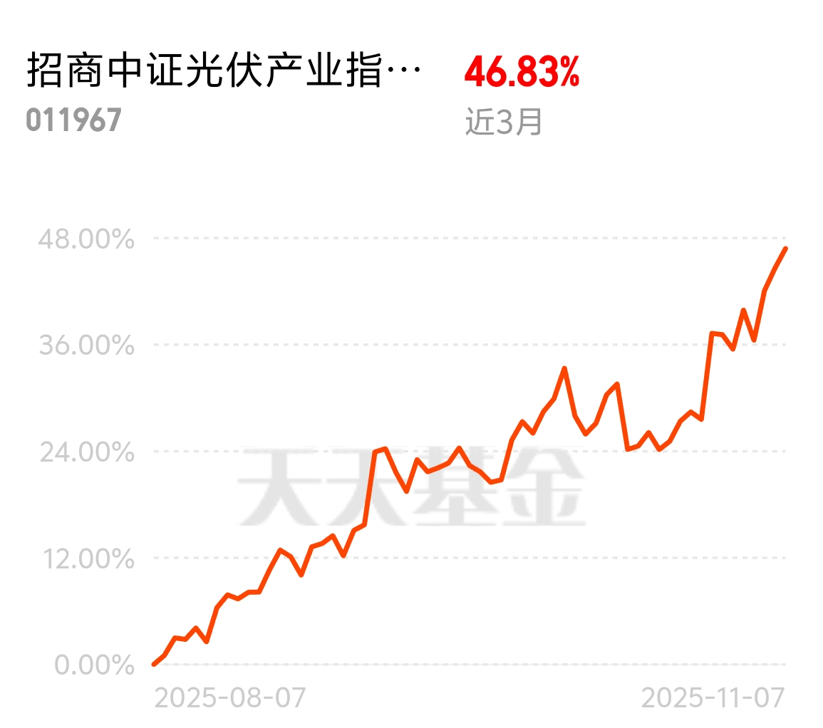 海外光伏市场也爆发了,很多国家都在补贴光伏装机,国内光伏产品出口量暴增。招商中证光伏产业指数C近3个月涨了46.83%,跟着全球光伏热喝汤,不用操心海外市场,基金帮你搞定。