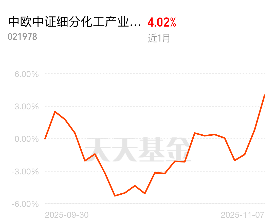 光伏、电池今天估值表现一般,化工行业却逆势上涨,30多种原料涨价,政策还在助力。中欧中证细分化工产业主题指数C近1个月涨4.03%,覆盖磷化工等热赛道,还有红包拿,投资就得选这种省心的。
