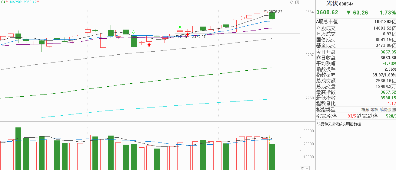 光伏:五连阳后洗盘遇冷!获利盘汹涌出逃,主力是真走还是诱多?