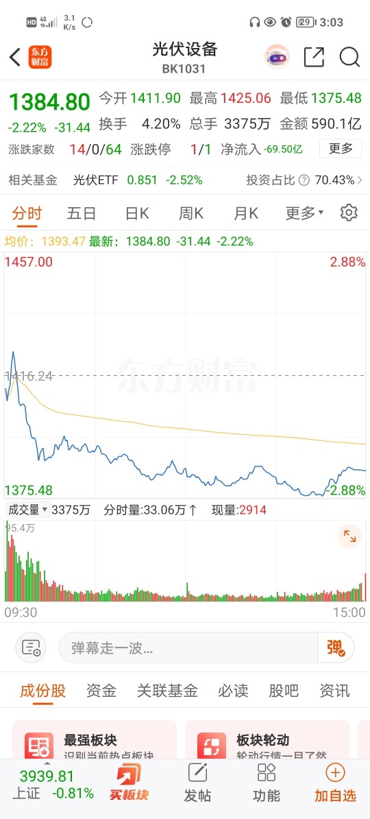 光伏主力不是东西,已连续5天大额流出,每天跑一百多亿,今天光伏设备跑69.5亿,光伏产业跑63.85亿。主力不出力,散户再多也白搭