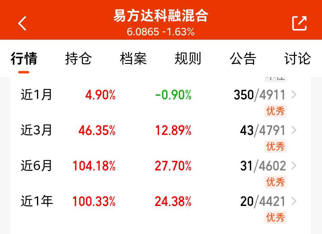 友友们,牛市行情里板块轮动快,押注单一赛道,均衡配置就能避免单一赛道风险,易方达科融混合,就是布局了科技,军工,新能源等行业,并且通过及时调仓有效控制回撤。业绩更优秀呢。