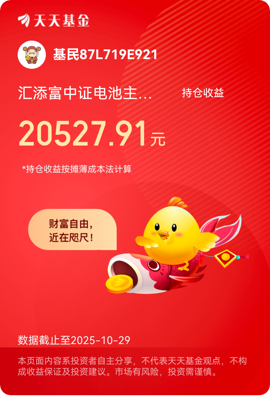 $汇添富中证电池主题ETF发起式联接A[012862]$ $汇添富中证电池主题ETF发起式联接A$ #晒收益#