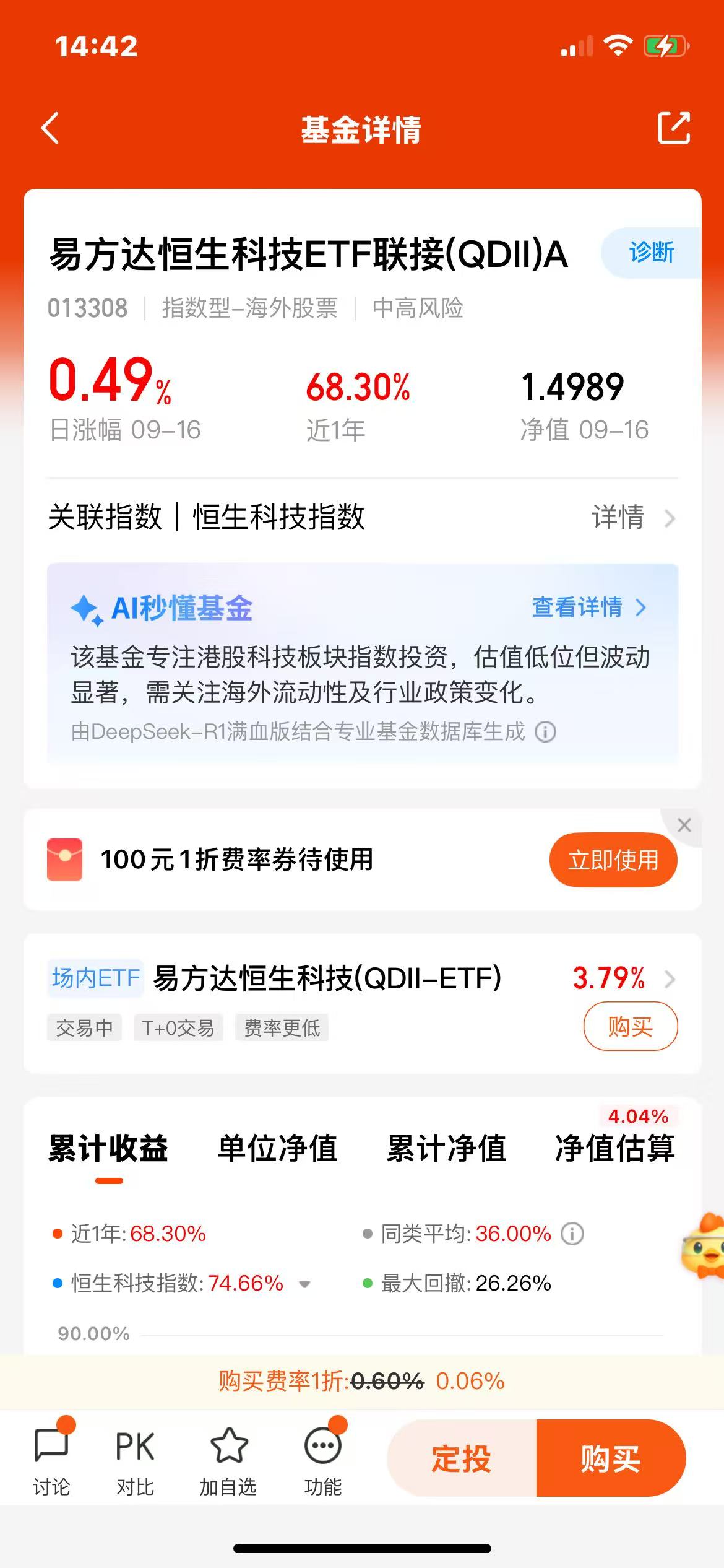 不过还是要早点布局起来了,我早就上车了易方达恒生科技,现在一直持有着;今天再买点!