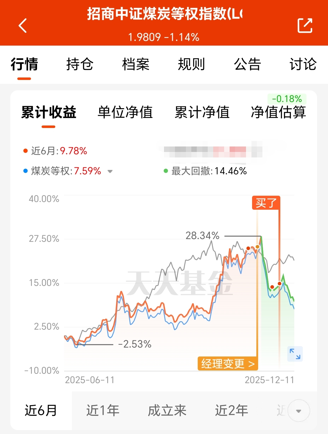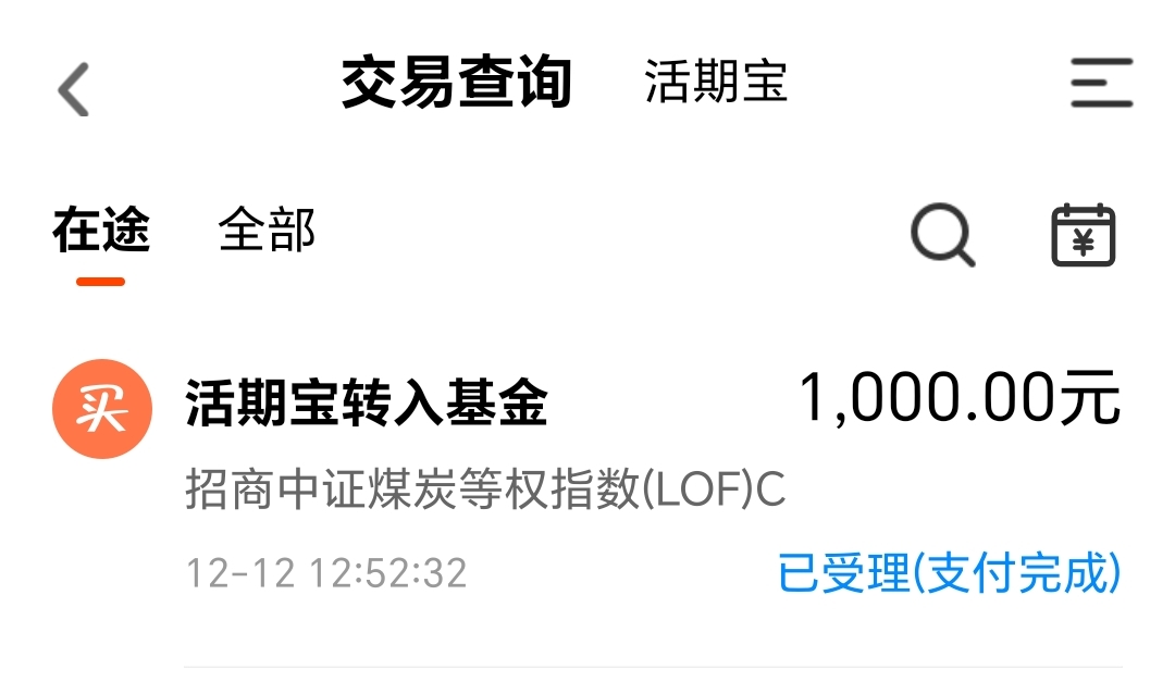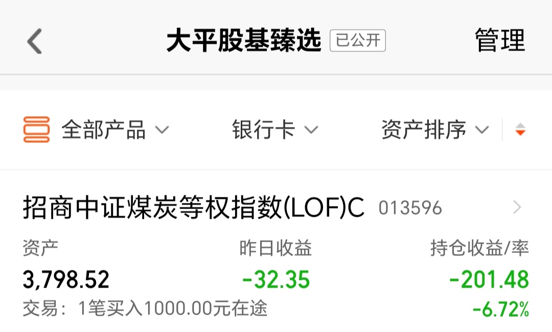 今天我买入$招商中证煤炭等权指数(LOF)C(OTCFUND|013596)$1000块钱。