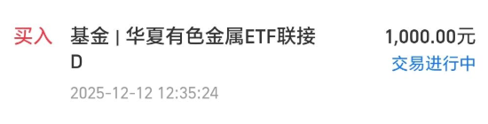 今天我买入$华夏有色金属ETF联接D(OTCFUND|021534)$1000块钱。