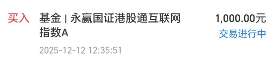 今天我买入$永赢国证港股通互联网指数A(OTCFUND|025765)$1000块钱。