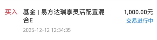 今天我买入$易方达瑞享混合E(OTCFUND|001438)$1000块钱。
