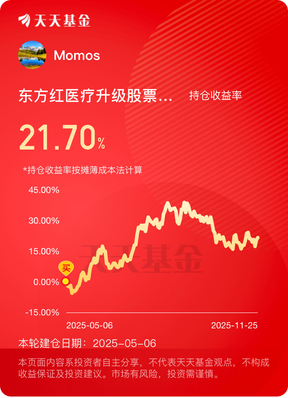 不能看短期,医药弹性大,长期还是向上的,要有点耐心,昨天涨了3个多点,逢低加仓收益应该不错$东方红医疗升级股票发起A$ #晒收益#