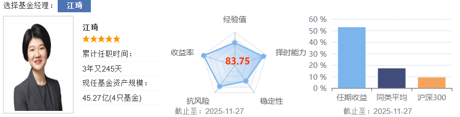 江琦自2022年2月25日管理(或拟管理)该基金,任职期内收益68.53%。