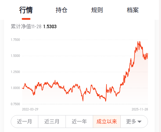 该基金成立以来(2022-09 - 2025-11 ) 收益率为53%, 同类中排名前10%.
