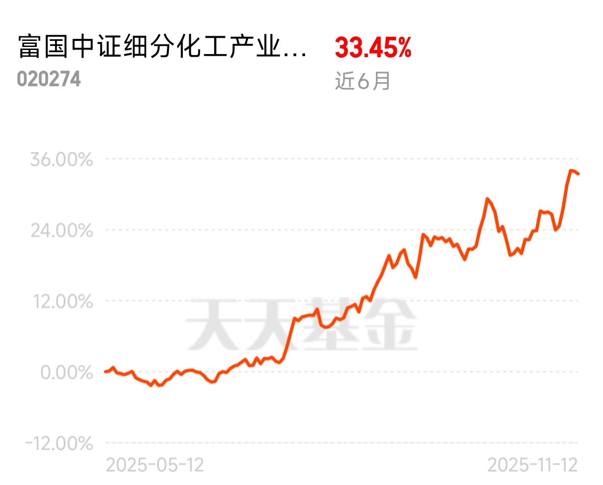 配置了华泰柏瑞恒生科技打底,最近搭了点富国中证细分化工产业主题ETF联接C,近6个月涨33%,跟踪误差才0.3%,跟指数贴得特别紧。