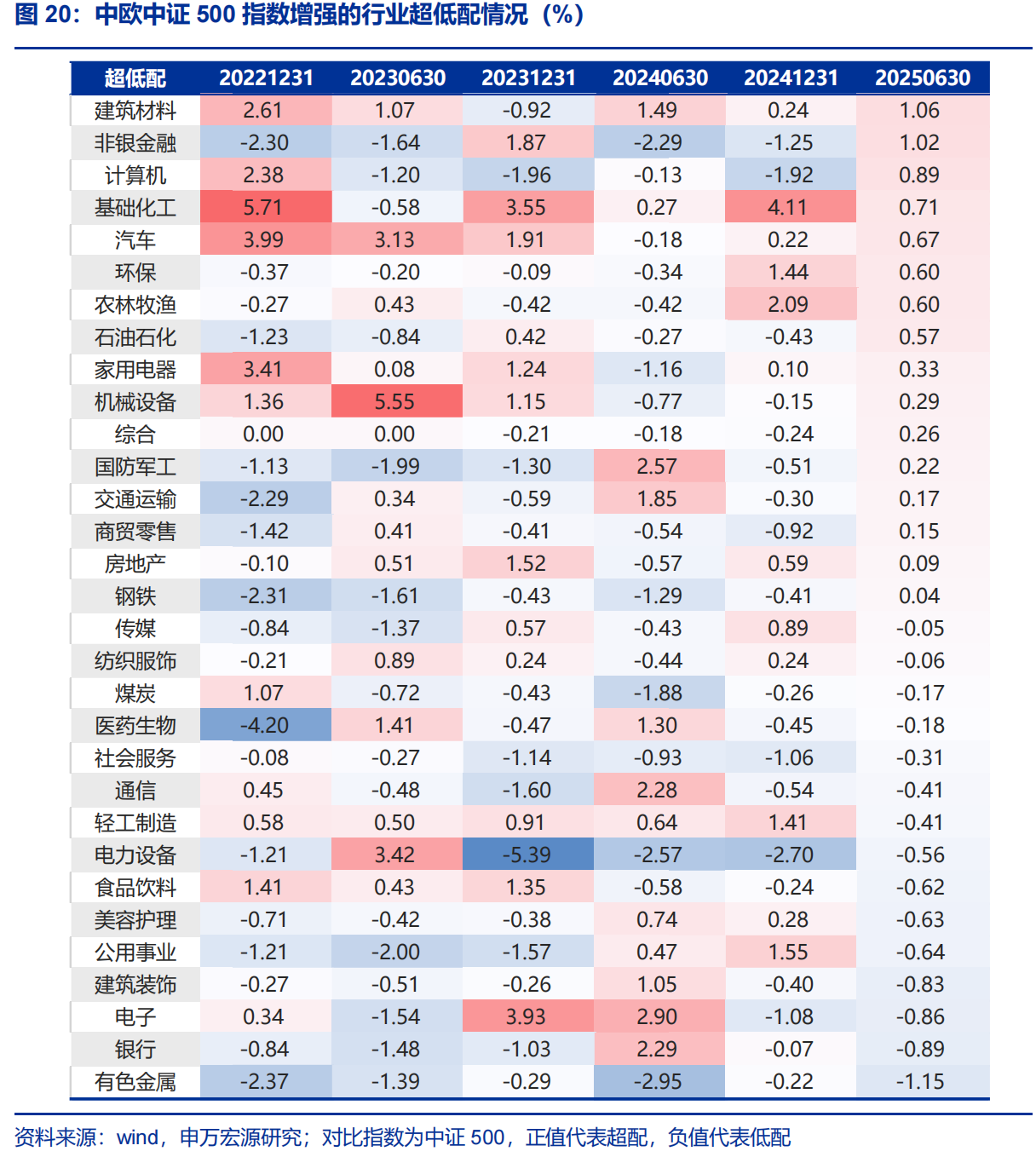 通过数据我们还发现了,中欧中证500指数增强基金在行业分布上较为贴近基准指数,最大超低配比例未超过6%,也就是这只基金没有过多押注某一行业来获取超额收益,而是侧重选股。