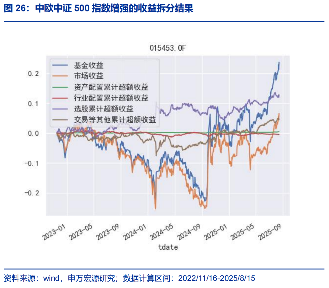 我们还是根据申万的数据对增强效果拆分,结果表明,这只基金的超额收益是通过基金经理选股+交易贡献较大,也就是通过量化选股实现超额收益的。