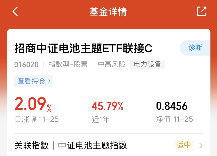 今天盘面表现不错,市场高开高走,走出了修复行情。国内首条大容量全固态电池产线刚建成投产,能量密度直接翻倍,还计划 2026 年装车测试,给电池赛道添了重磅利好。$招商中证电池主题ETF联接C(OTCFUND|016020)$经过上周调整后,当前估值更具吸引力。从中长期来看,这波上涨才刚刚起步,现在可以逢低加仓布局,静静等待后市持续走高、芝麻开花节节高!