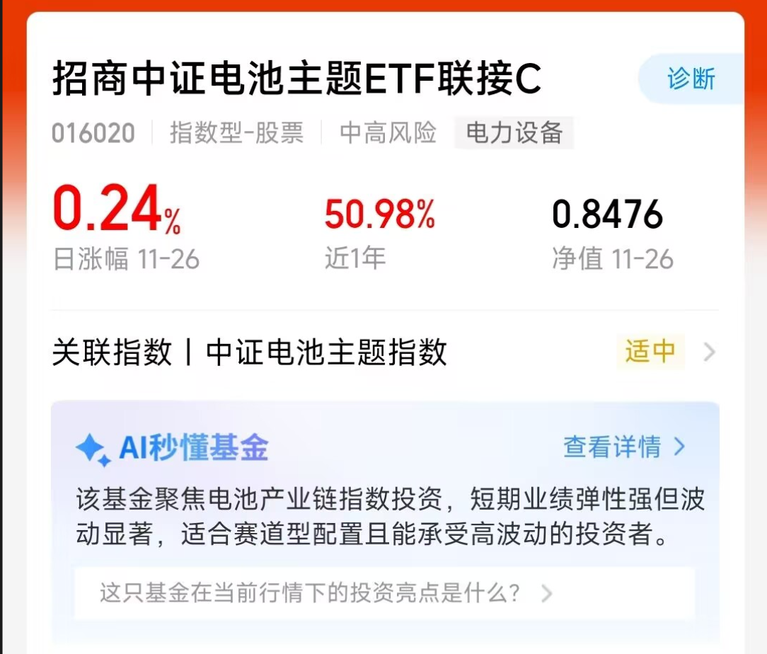 今天市场赛道轮动,国内首条大容量全固态电池产线刚建成投产,能量密度直接翻倍,2026 年还计划装车测试,电池赛道利好不断,今日继续上涨。$招商中证电池主题ETF联接C(OTCFUND|016020)$持仓很实在 —— 固态电池概念占 40%,储能概念占 60%,比不少同类基金表现更优。技术突破 + 产业化提速加持,电池赛道配置价值越来越明显。