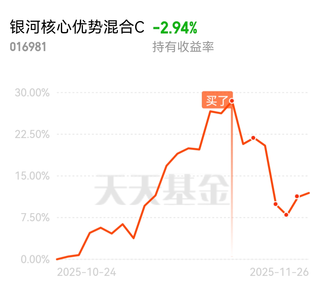 我最近加的$银河核心优势混合C$ 今日大概率红了,主要聚焦新能源产业链,持仓的电池,光伏等契合新能源产业长期发展趋势,前十大重仓股中既包括宁德时代,亿纬锂能,阳光电源等龙头企业,也覆盖了迈为股份,海博思创等具备潜力的二线标的,跌多反弹也多,第一重仓目前看已经涨超9%,虽然我追涨建仓了,不过我不慌,今天继续加仓,坐等反弹了。#晒收益#