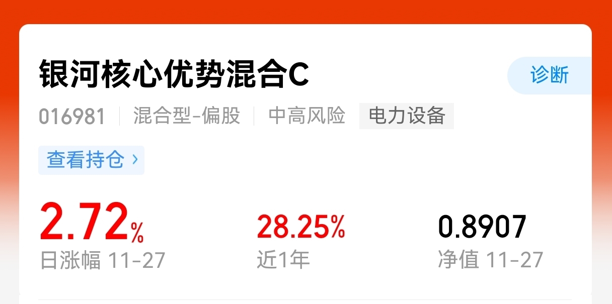 截至收盘,上证指数涨0.29%,深证成指跌0.25%,创业板指跌0.44%,北证50跌0.61%,大盘有些回落,$银河核心优势混合C$ 这个涨幅2.72%,表现优秀,已经3连涨了,新能源产业链崛起!