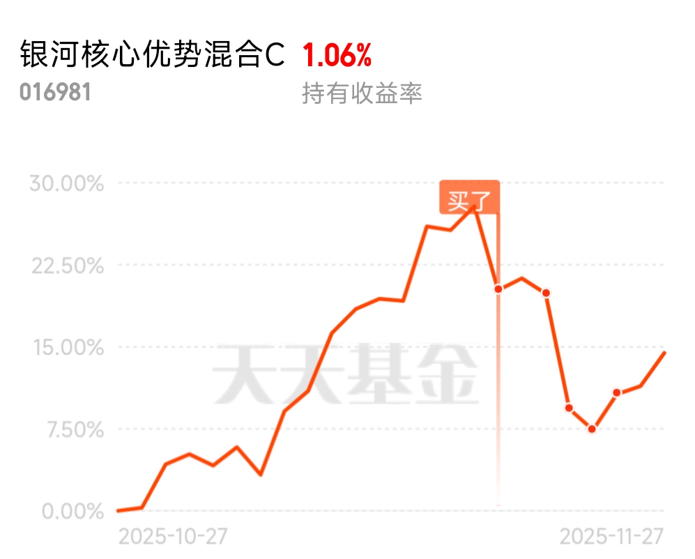 今天A股三大指数震荡走高集体上涨,电力设备涨幅领先,$银河核心优势混合C$ 估值+0.51%,昨天+2.72%,准备冲刺4连涨,表现不错,近一个月+14.43%,近三个月+37.01%,近六个月+58.94%,各阶段业绩表现不错,赚钱效应强。