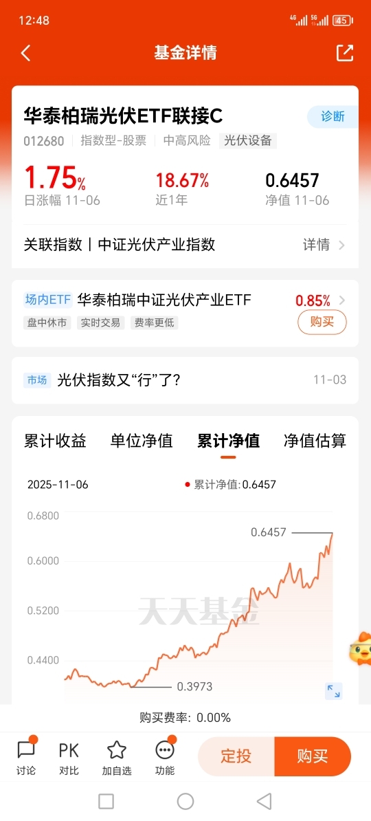 最近光伏这波行情也太给劲儿了吧!前阵子还愁这板块是不是要“躺平”,结果这几天直接支棱起来——连我妈都问我“你买的那个光伏基是不是又涨了”~其实不光是短期行情给力,这行业基本面是真在变好:产能理顺了、需求也跟着上来了,之前卷到不行的价格战也缓和不少,算是从“内卷修罗场”里喘过气了。这种时候选个靠谱的基很重要,我一直跟的华泰柏瑞就挺稳的,跟的是光伏产业指数,行情吃肉的时候它能跟上,回调的时候也不至于太慌。反正我是打算趁这波基本面回暖,再加点仓,毕竟“反内卷+行情起飞”的机会,可不常有~#科技热点摊开业啦#