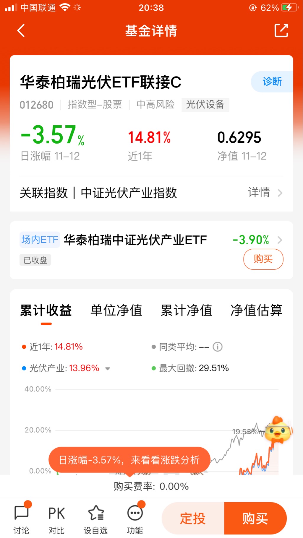 华泰柏瑞这只买的是整个光伏产业,不是某一家,行业好了它肯定好。现在跌的时候买,总比等行业好了再买便宜,而且指数基金也不用操心选个股,适合我这种不想费脑子的,我打算再拿拿看。#4000点 到底要不要止盈?#