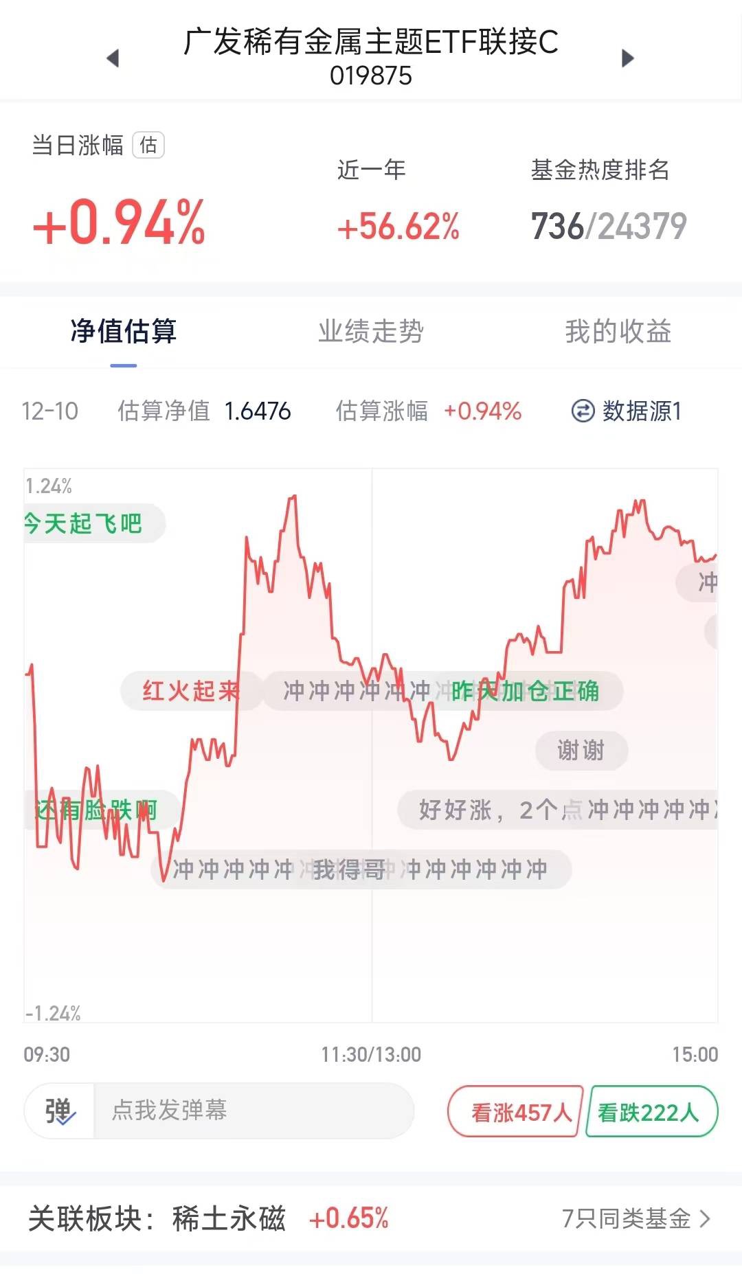 看了下稀有金属涨幅估值0.94%,估计龙头企业产能利用率提升利好不少,$广发中证稀有金属ETF发起式联接C$ 还能涨