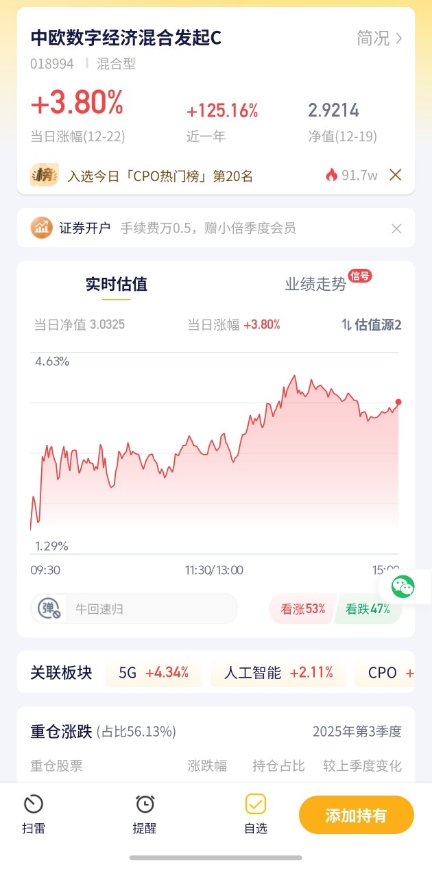 13. 【中欧数字经济混合发起C估值播报+12.22行情】