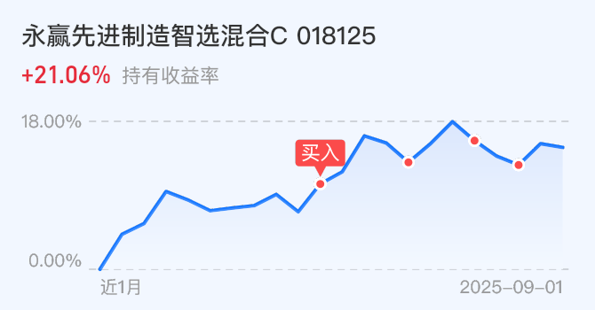 $永赢先进制造智选混合发起C(OTCFUND|018125)$今天加仓500元。