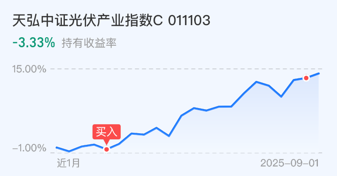 $天弘中证光伏产业指数C(OTCFUND|011103)$今天不动。