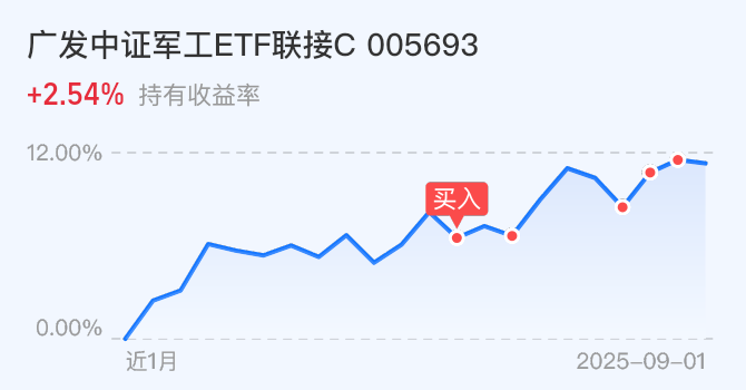 $广发中证军工ETF联接C(OTCFUND|005693)$今天加仓500元。