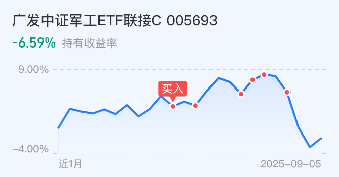 $广发中证军工ETF联接C(OTCFUND|005693)$今天不动。
