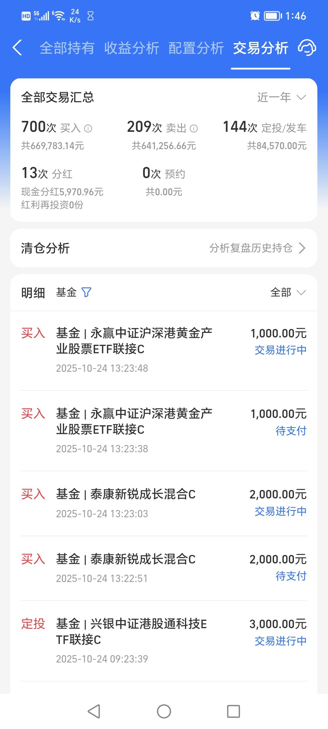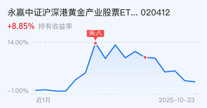 $永赢中证沪深港黄金产业股票ETF发起联接C(OTCFUND|020412)$今天加仓1000元。