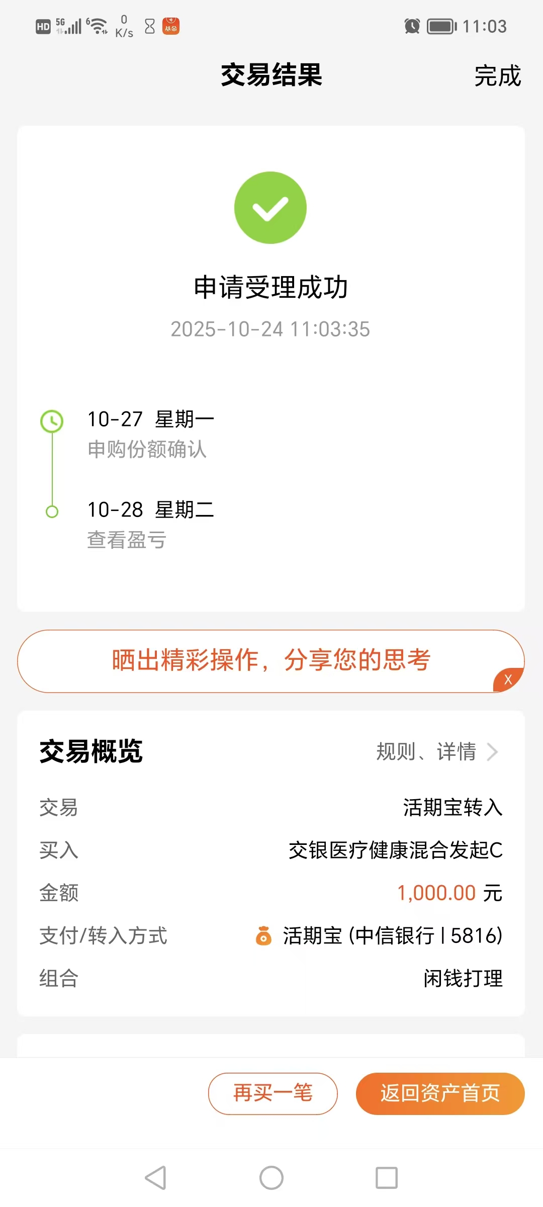 $交银医疗健康混合发起C(OTCFUND|019346)$今天加仓1000元。