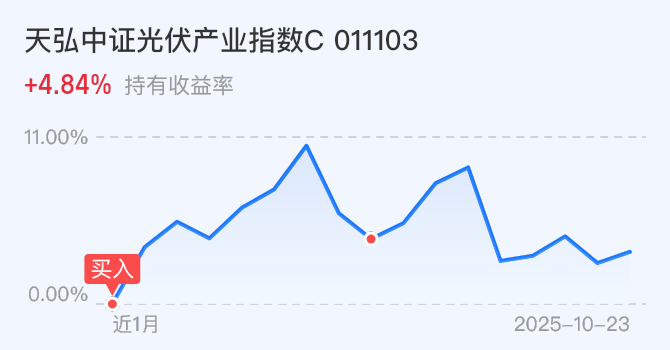$天弘中证光伏产业指数C(OTCFUND|011103)$今天不动。