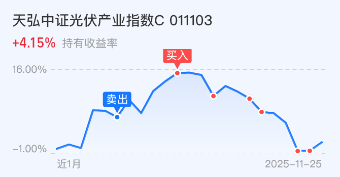 $天弘中证光伏产业指数C(OTCFUND|011103)$ 今天不动。