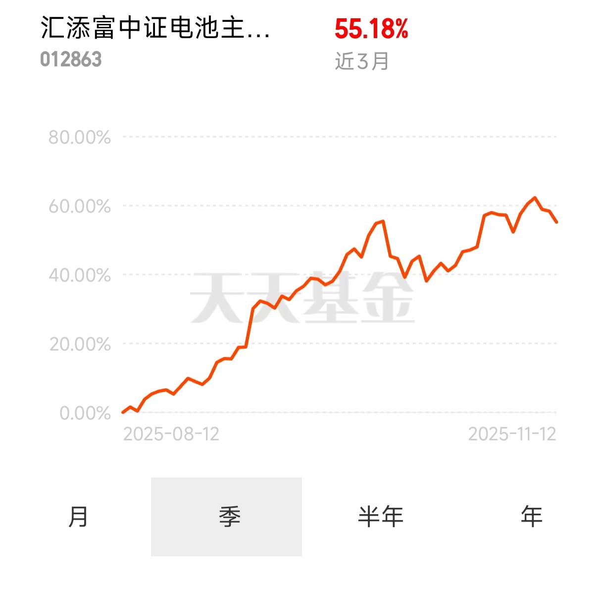 今天$汇添富中证电池主题ETF发起式联接C$(012863)又爆了,预估涨幅7%!我之所以拿得住,是因为它重仓的四大天王——宁德时代、阳光电源、亿纬锂能、先导智能,都是电池领域的硬货。阳光电源权重高,波动大机会也大,近三个月55%的涨幅很能打。半年68%的收益在同类里靠前,加上储能和固态电池需求打开,这基全面覆盖,费率低,普通人跟着大势走就行。#沪指刷新10年新高!4100点指日可待?#