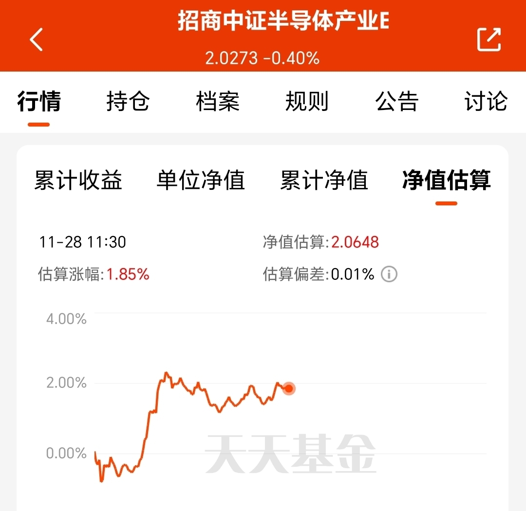 今天行情低开高走,截至中午收盘$招商中证半导体产业ETF发起式联接C$ 预计上涨1.85%。